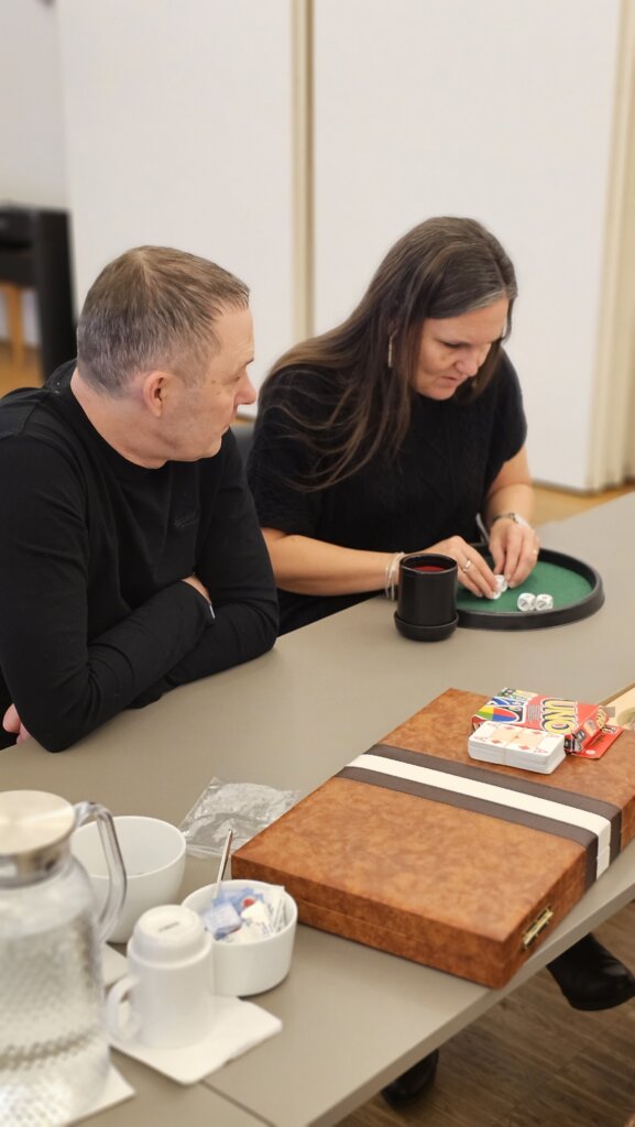 "Vi fandt ud af, at vi stadig kan grine sammen og nyde hinanden i tosomheden. Vi fandt ud af, at vi da sagtens stadig kan spille spil sammen, selvom jeg kan se så lidt, som jeg kan. Så nu skal jeg i hvert fald ud at have købt nogle terninger", griner Christina.