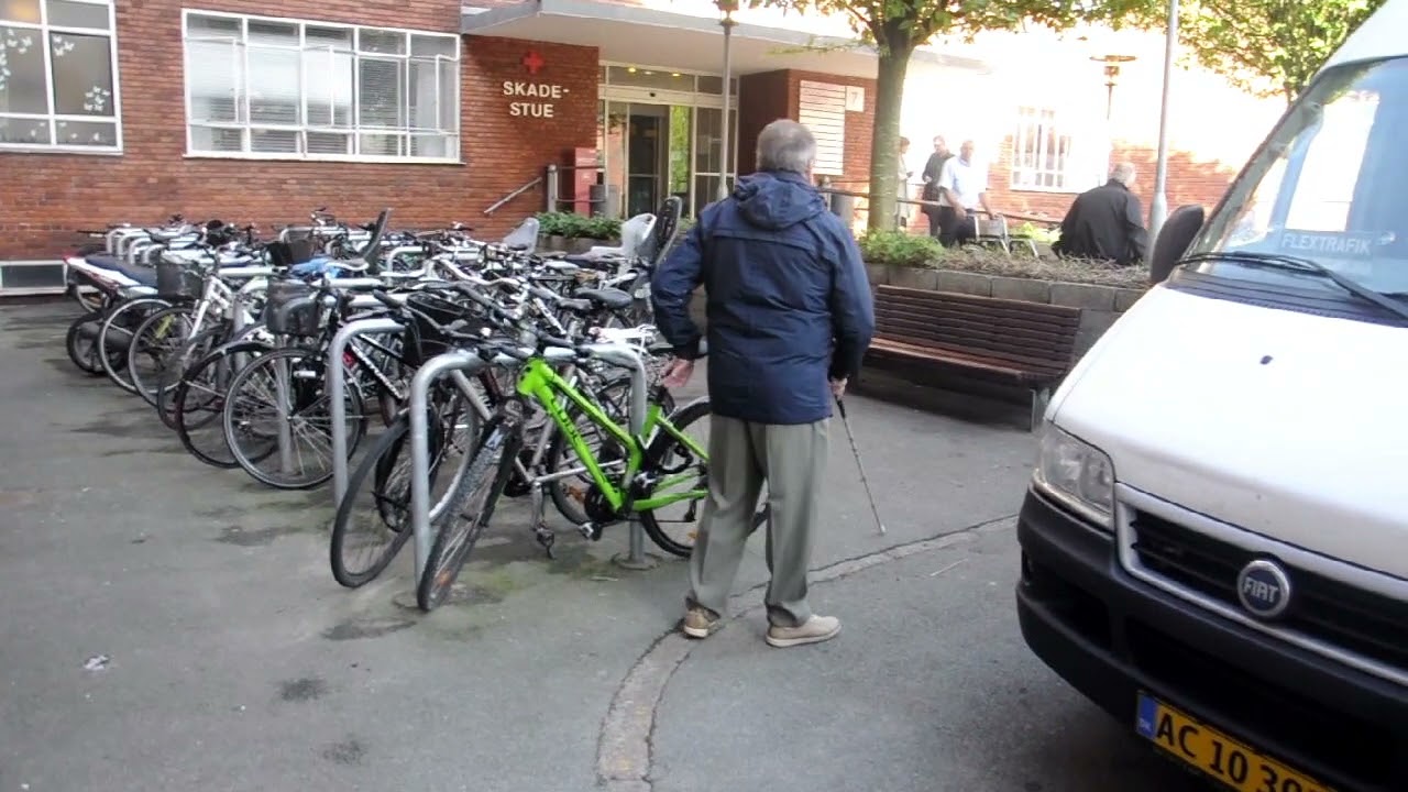 Fortovet ’forsvinder’ og den blinde person er ved at gå ind i de parkerede cykler.