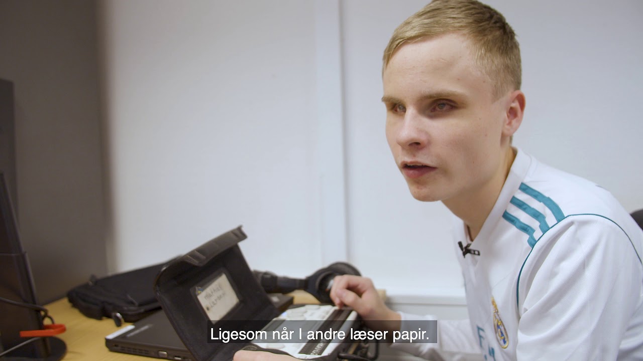 ”Hvis jeg ikke har de hjælpemidler, som jeg har lige nu, vil mit liv ikke se skide godt ud. Det vil være svært for mig at klare skolen. Jeg er glad for, at teknologien kan hjælpe, for ellers havde jeg været meget mere udfordret, end jeg er i dag”, forklarer Mathias. I samarbejde med Microsoft arbejder Dansk Blindesamfund på at vise, hvordan teknologiske hjælpemidler og digitale læringsplatforme gør det muligt for personer med synshandicap at tage en uddannelse på lige fod med deres jævnaldrende.